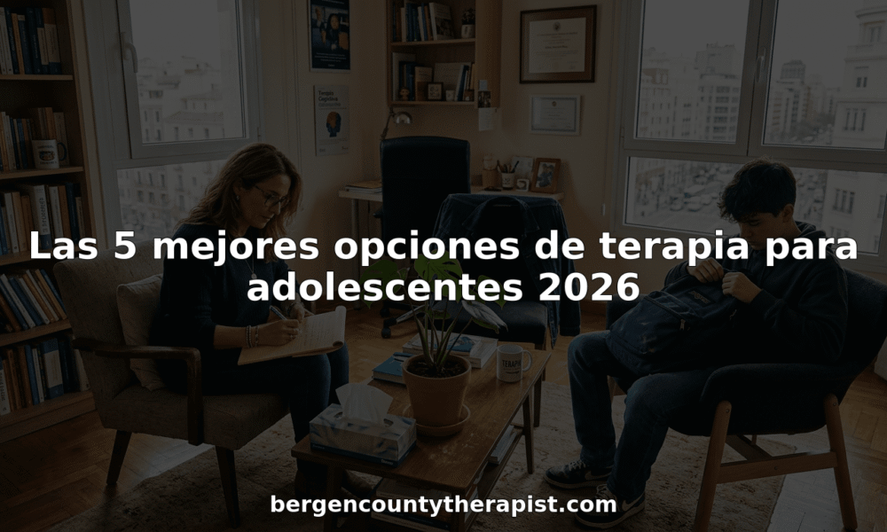 El artículo sobre “Las 5 mejores opciones de terapia para adolescentes 2026” resalta la importancia de brindar atención especializada y personalizada a jóvenes que enfrentan ansiedad, estrés y conflictos familiares. Para las familias que buscan un acompañamiento serio, adaptado a las necesidades particulares y con opciones tanto presenciales como virtuales, en Bergen County Therapist encontrarás esa respuesta. Nuestra plataforma se enfoca en crear planes de tratamiento que impulsan cambios reales y medibles en corto tiempo.
