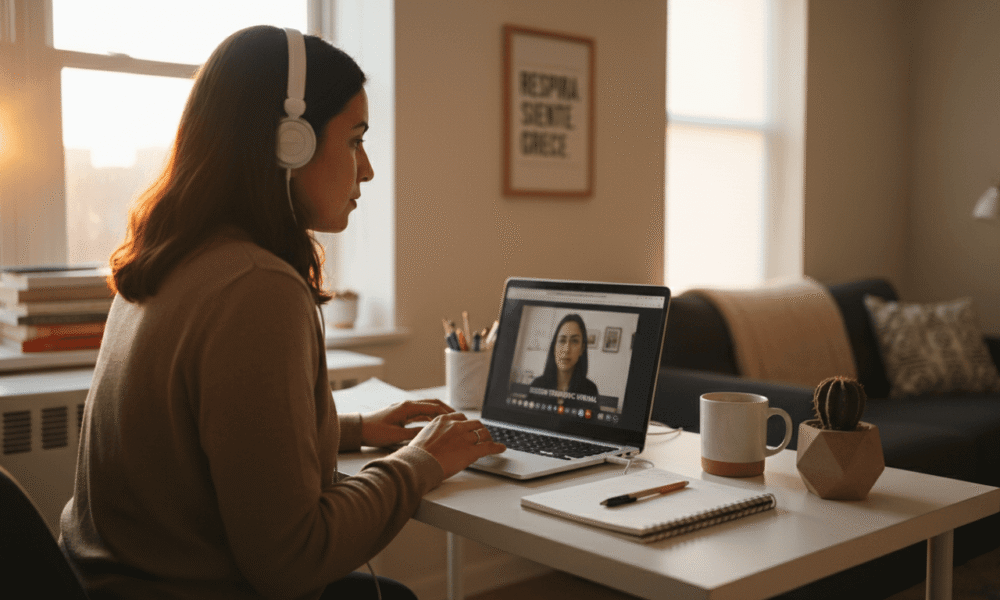 Utiliza exclusivamente plataformas que cumplan con regulaciones HIPAA y ofrezcan encriptación de extremo a extremo verificable. Crea un espacio físico privado donde no serás interrumpido, utilizando auriculares para mayor confidencialidad si vives con otras personas. Verifica las políticas de privacidad de tu terapeuta durante la consulta inicial y confirma que los datos de sesiones se almacenan según protocolos seguros con cronogramas claros de retención y eliminación.